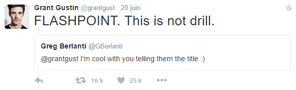 C'est donc officiel : FLASHPOINT sera le nom de l'épisode The Flash S03E01. Et ce n'est pas tout puisque l'acteur rajoute quelques petits détails via d'autres tweets :