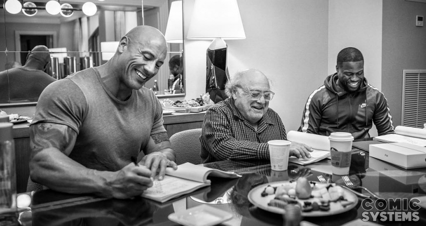 Et pour continuer sur la célébration du début du tournage, Dwayne Johnson dévoile une nouvelle photo en coulisses de tournage sur laquelle on le voit aux côtés de Danny DeVito et de Kevin Hart, qui était déjà présent dans le film précédent et avec qui il incarne depuis quelques temps un vrai duo comique. La légende de la photo est tout aussi drôle que ces trois acteurs, The Rock sait manier les bons mots comme à son habitude :