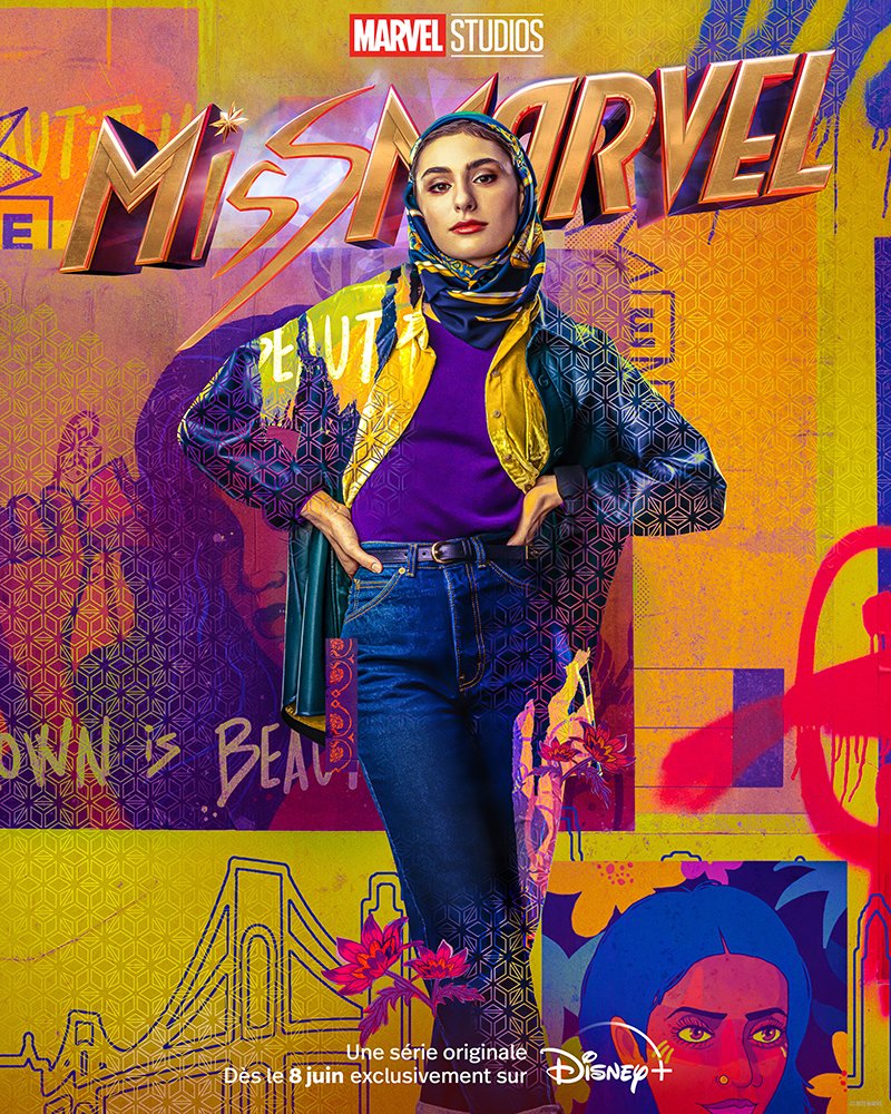 Sur un casting qui n'est pas encore totalement révélé, ou plutôt dont les rôles n'ont pas été totalement révélés, la série Miss Marvel (ou Ms. Marvel) révèle 9 nouvelles affiches personnages qui permettent de découvrir les personnages principaux de cette nouvelle aventure au sein de la Phase 4 du Marvel Cinematic Universe. Le compte à rebours est lancé, rendez-vous le 8 juin 2022 sur Disney+ !