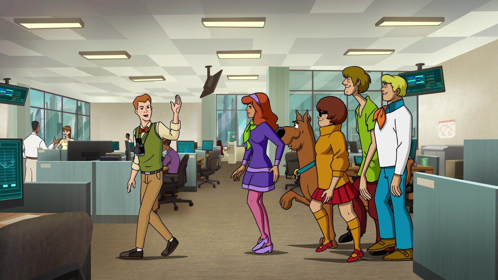 Jimmy Olsen accueille le Scooby Gang (Mystery Incorporated) dans le Daily Planet