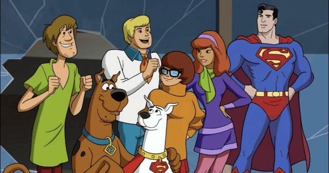 Le Scooby Gang (Mystery Incorporated), Krypto et Superman après une photo pour le Daily Planet