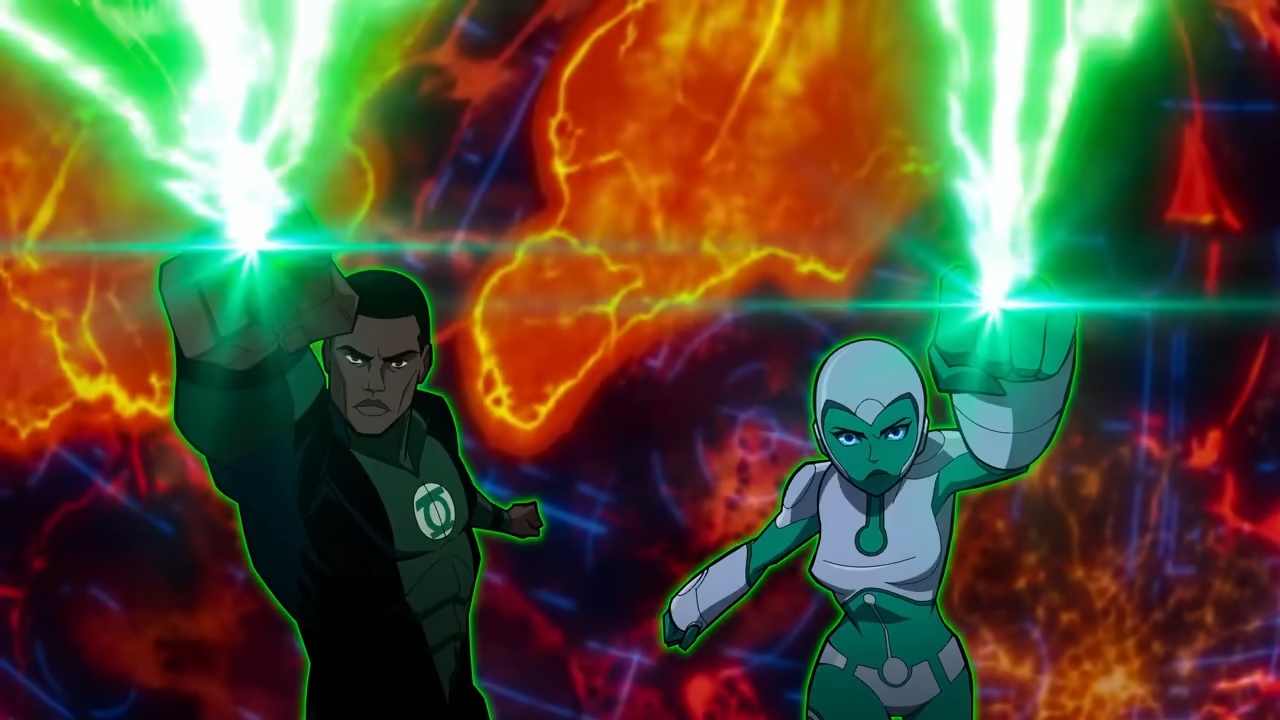 Green Lantern John Stewart (Aldis Hodge) et Green Lantern Aya (Jennifer Hale)
