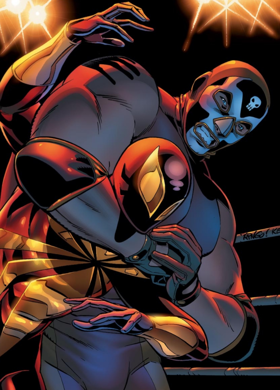 « Cover des comics The Friendly Neighborhood Spider-Man (Iron Spider) contre El Muerto »