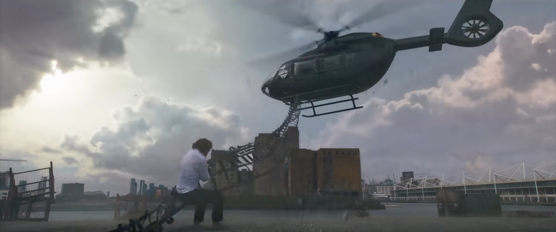 « Sergei Kravinoff (Aaron Taylor-Johnson) tente d'arrêter un hélicopter »