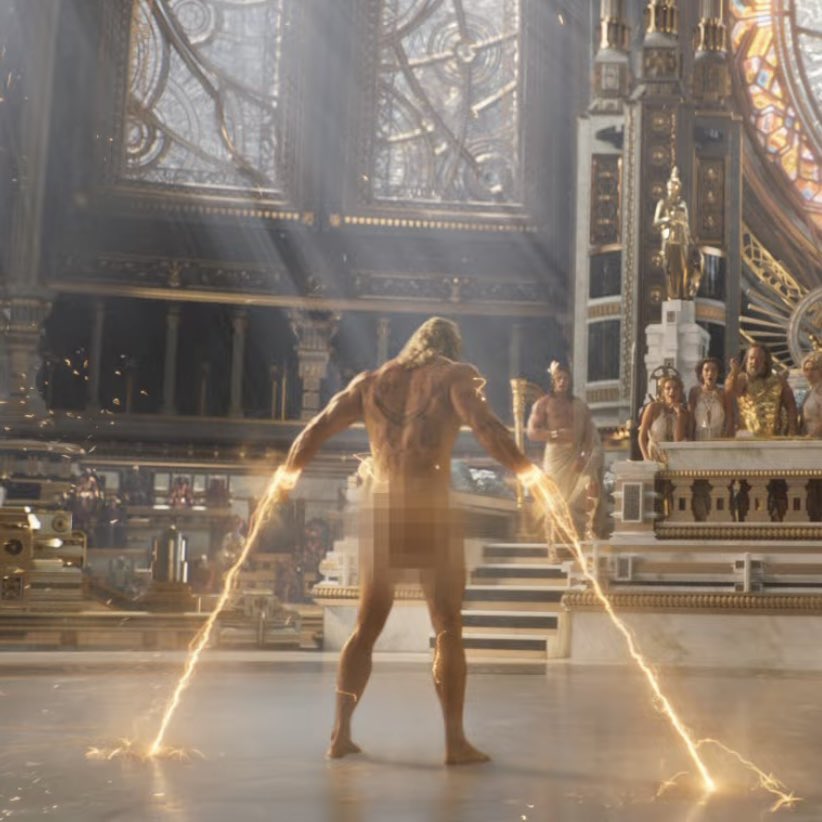 Thor Odinson (Chris Hemsworth) est nu à cause de Zeus