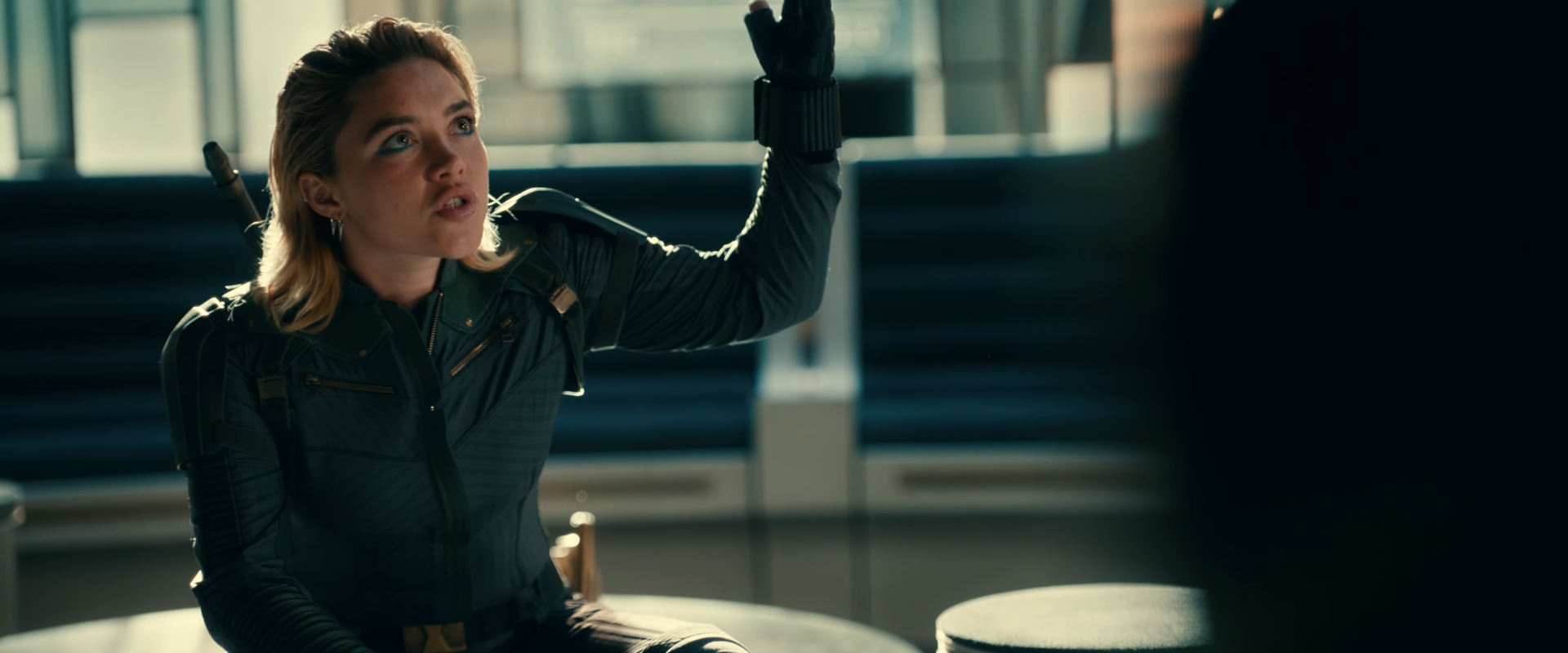 « Scène post-générique : Yelena Belova (Florence Pugh) parle d'une crise dans l'espace »
