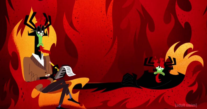 L'introduction d'Aku se fait donc assez rapidement même s'il n'a pas été présent dans le premier épisode. Cela permet de faire monter le suspens et de lui laisser un moment dédié par la suite… Aku a compris qu'en envoyant son plus grand ennemi dans le futur, il l'a maudit pour l'éternité, il s'est fait à l'idée qu'aucune de ses machines ne peut le tuer.