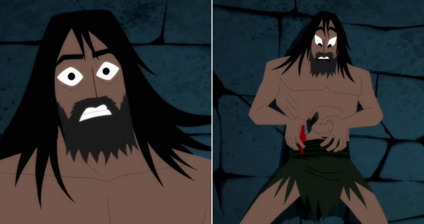 De manière plus poussées, le créateur de la série Genndy Tartakosky nous montre le tourment dans lequel Jack se trouve lorsqu'il parle à sa propre conscience et qu'elle lui suggère, sans le dire clairement, presque d'abandonner pour rejoindre ses ancêtres… tel un bon guerrier japonais, le samouraï aurait donc penser à garder son honneur en se suicidant.