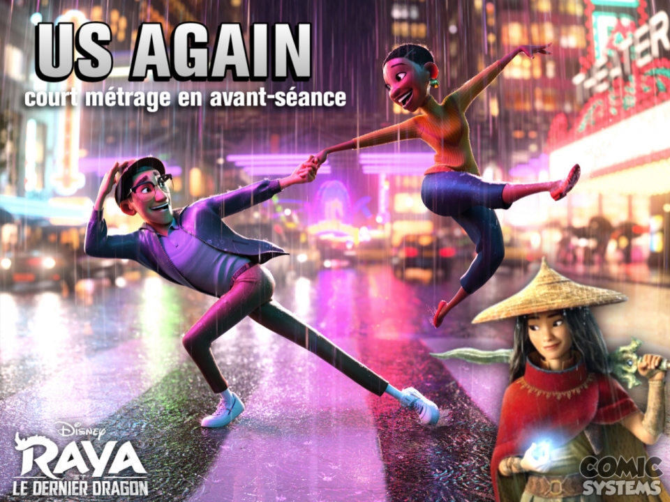 Nous parlons bien des studios d'animation Disney et non pas Pixar et encore moins de la Walt Disney Company qui les regroupe tous les deux. Les heureux spectateurs qui iront voir Raya et le dernier dragon en salles auront donc la chance de découvrir le nouveau court métrage du studio d'animation intitulé Us Again (titre anglais).