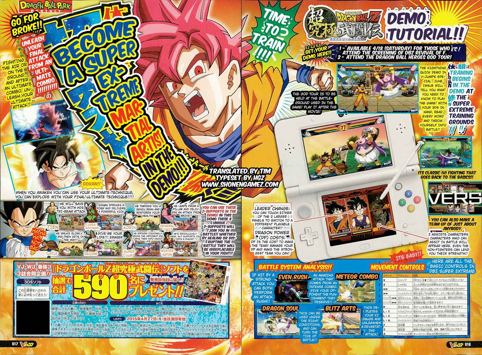 J'ai sûrement oublié de préciser dans les articles précédents que la dernière édition du V-JUMP annonçait qu'une démo du jeu DBZ ExBd sera disponible dès le mois de mai. Si vous êtes au Japon ou que vous connaissez quelqu'un qui se trouve là-bas ce mois-ci, cette liste résume l'article entier et le nombre de bonus dans ce jeu :
